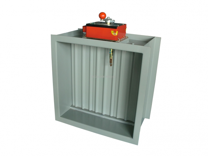 防火閥是有殼體、葉片、又叫法蘭凸緣盤(pán)或突緣和聯(lián)動(dòng)組織組成的。原理是通過(guò)金屬易熔片和離合器(Clutch)組織來(lái)使葉片的滾動(dòng)。當(dāng)防火閥抵達(dá)易熔金屬片的熔點(diǎn)時(shí),易熔片就會(huì)斷開(kāi),它芯軸上面的繃簧(huáng)銷會(huì)主動(dòng)翻開(kāi),葉片感受到阻力會(huì)形成滾動(dòng),然后抵達(dá)排煙通風(fēng)的意圖。