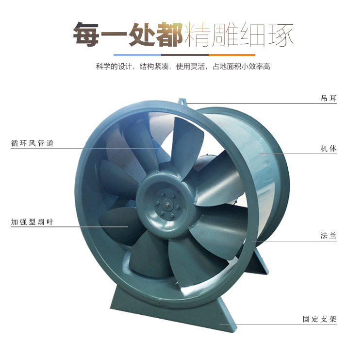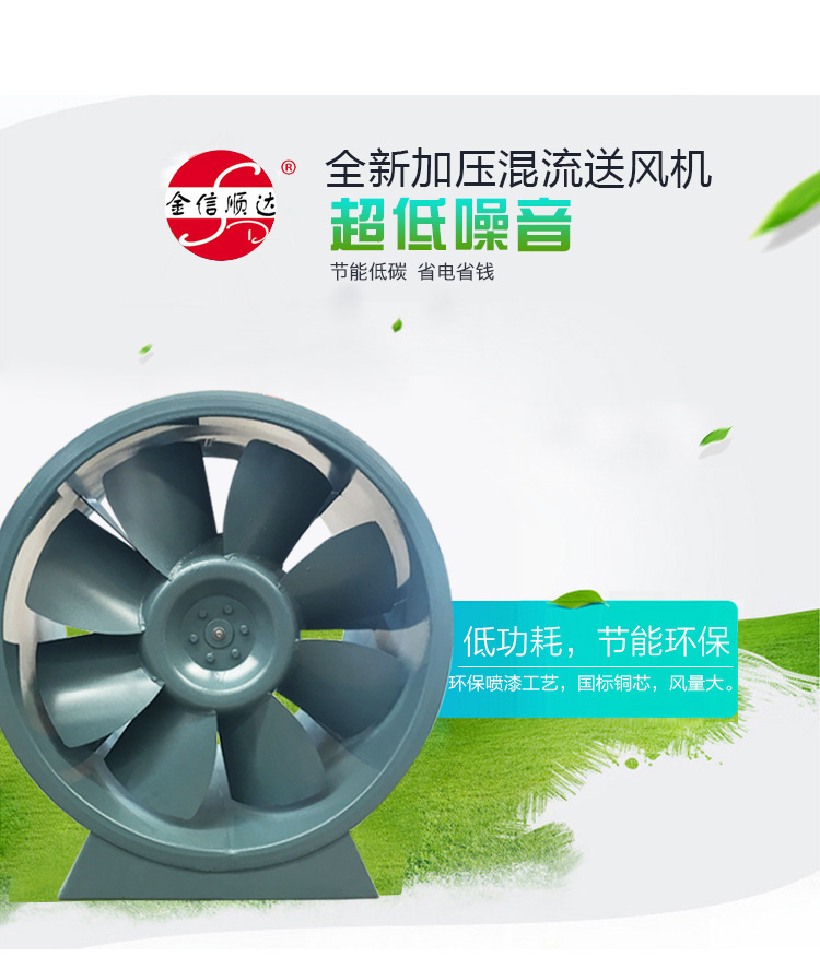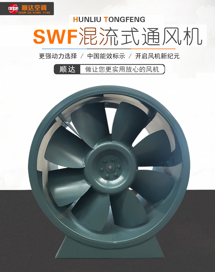 混流(斜流)風機,風壓系數(shù)比軸流風機高,流量系數(shù)比離心風機大,用在風壓和流量都“不大不小”的場合。它填補了軸流風機和離心風機之間的空白。同時具備安裝簡單方便的特點。